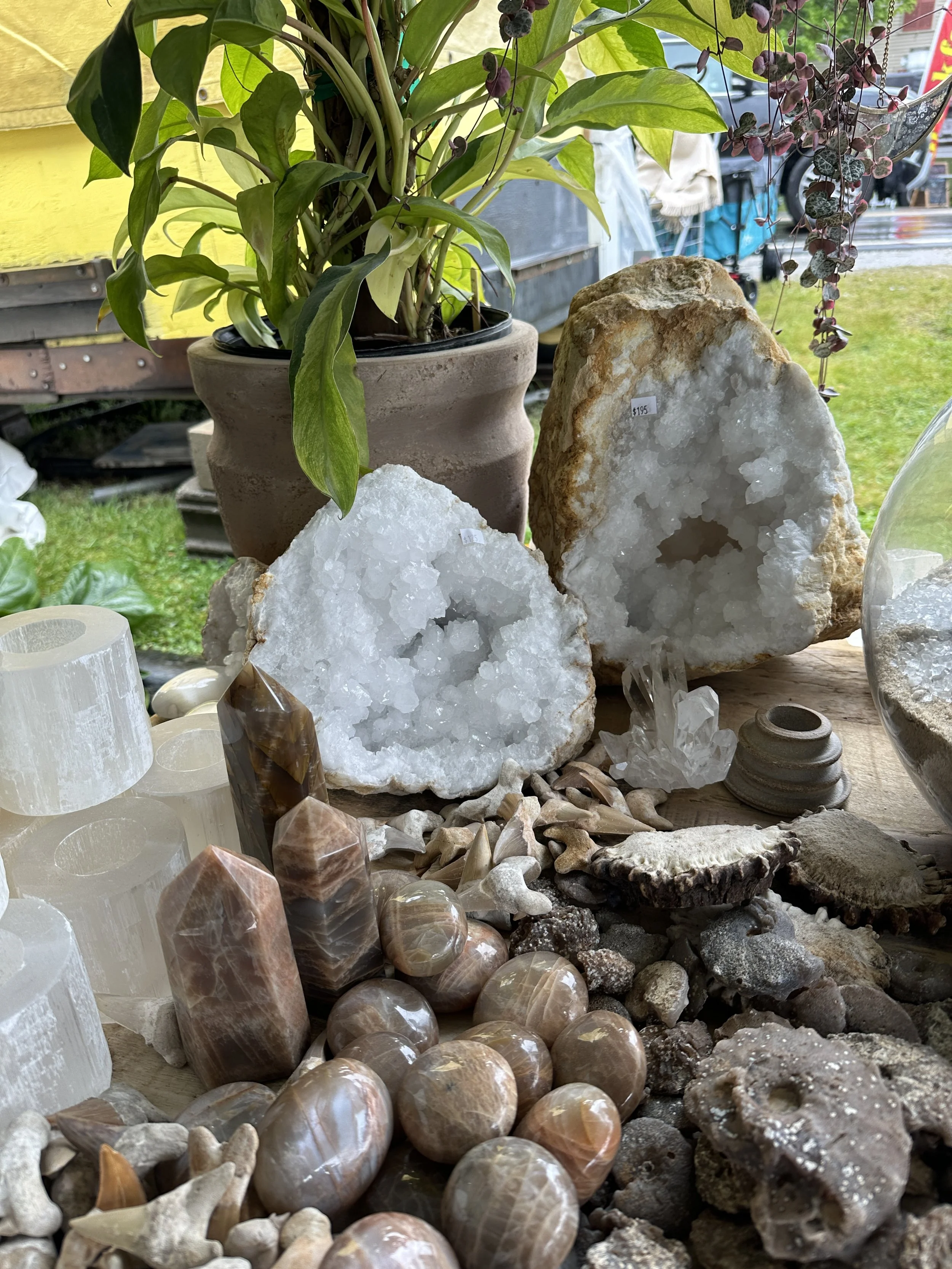 Geodes and crystals I regret not buying. To be fair I was getting a contact high from being in this tent full of people partaking in the legal marijauna of Massachusetts and had to escape before I got too stoned to thrift!