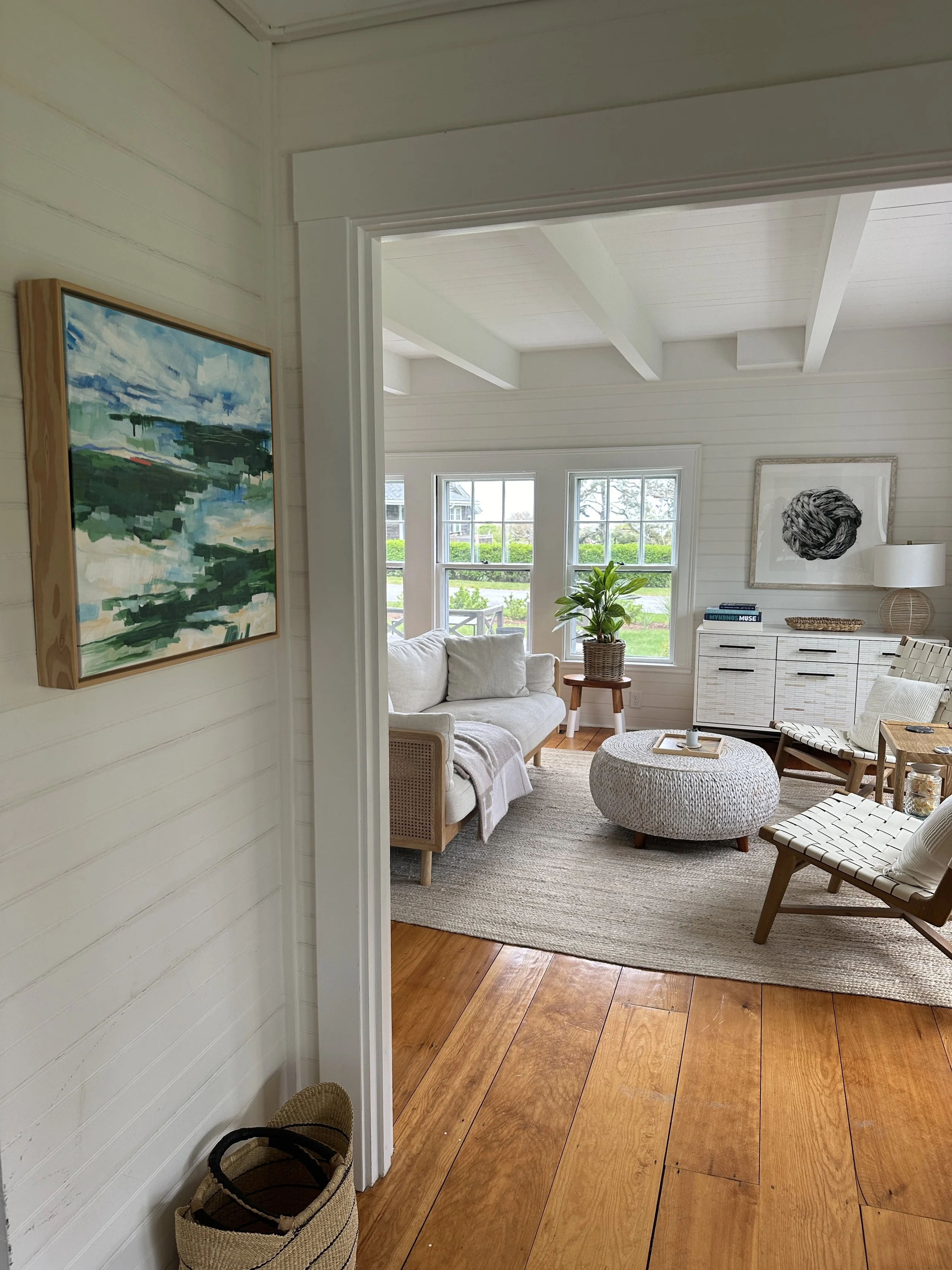 Valley Green greets you at the door, that little red-orange piece will always remind me of my dad. The month before he died I had my first in-person showing of my art at the Wayne Art Center and it was awarded a prize. I had debated adding that little unexpected pop of color and my dad told me to go for it. The judges actually said that it made the piece! Thanks dad ❤️
